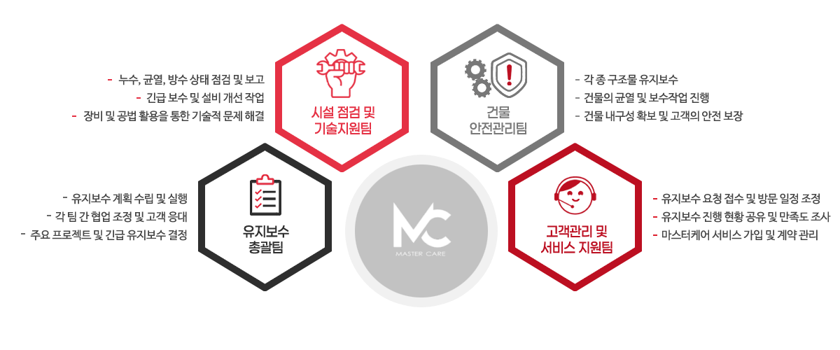 ¢ßâÁ¶»ê¾÷°³¹ßÀÇ Àü¹® À¯Áöº¸¼ö °ü¸®ÆÀ ¸¶½ºÅÍÄɾ ü°èÀûÀÎ Á¡°Ë°ú ÁÖ±âÀûÀÎ °ü¸® ¼­ºñ½º¸¦ ÅëÇØ °Ç¹°ÀÇ ¼ö¸íÀ» ¿¬ÀåÇϰí ÃÖÀûÀÇ »óŸ¦ À¯ÁöÇÒ ¼ö ÀÖµµ·Ï Áö¿øÇÕ´Ï´Ù.